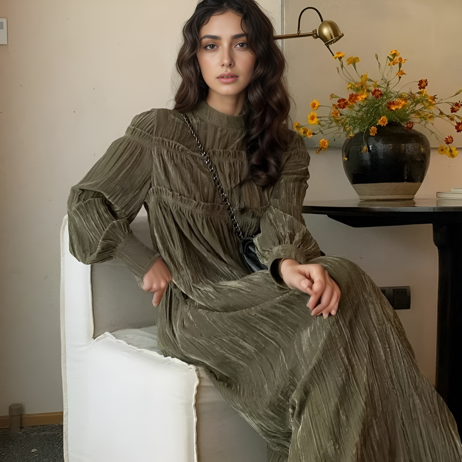 Stylish 3D Puff Sleeve Long Dress – Perfect for Every Occasion