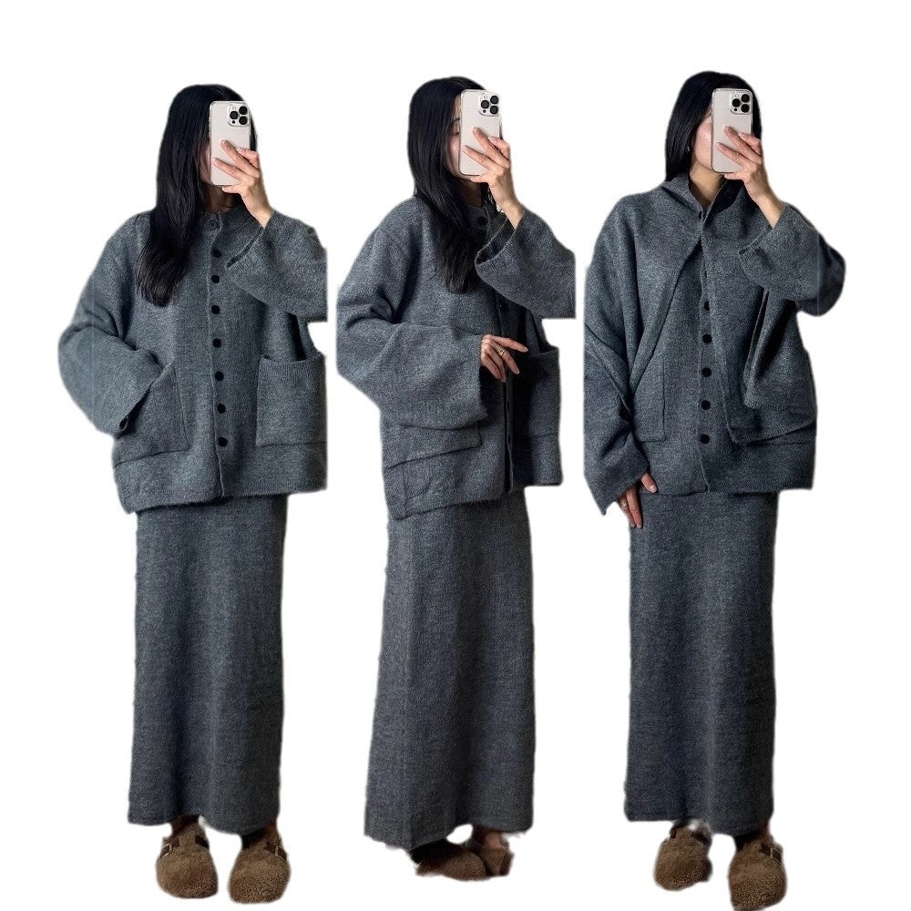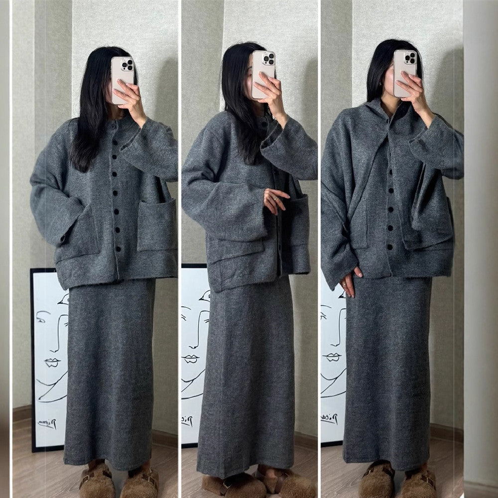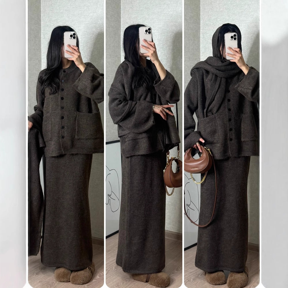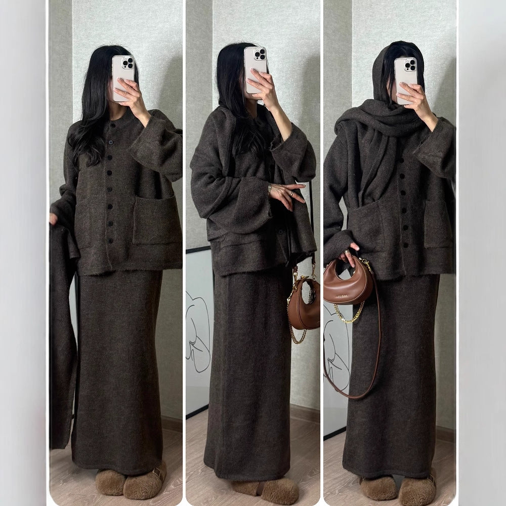 Upgrade your wardrobe with this stylish and versatile two-piece set featuring a button-up top and a matching long skirt. Designed with a Japanese-Korean casual aesthetic, this outfit is perfect for cozy, effortless style that suits a variety of occasions.