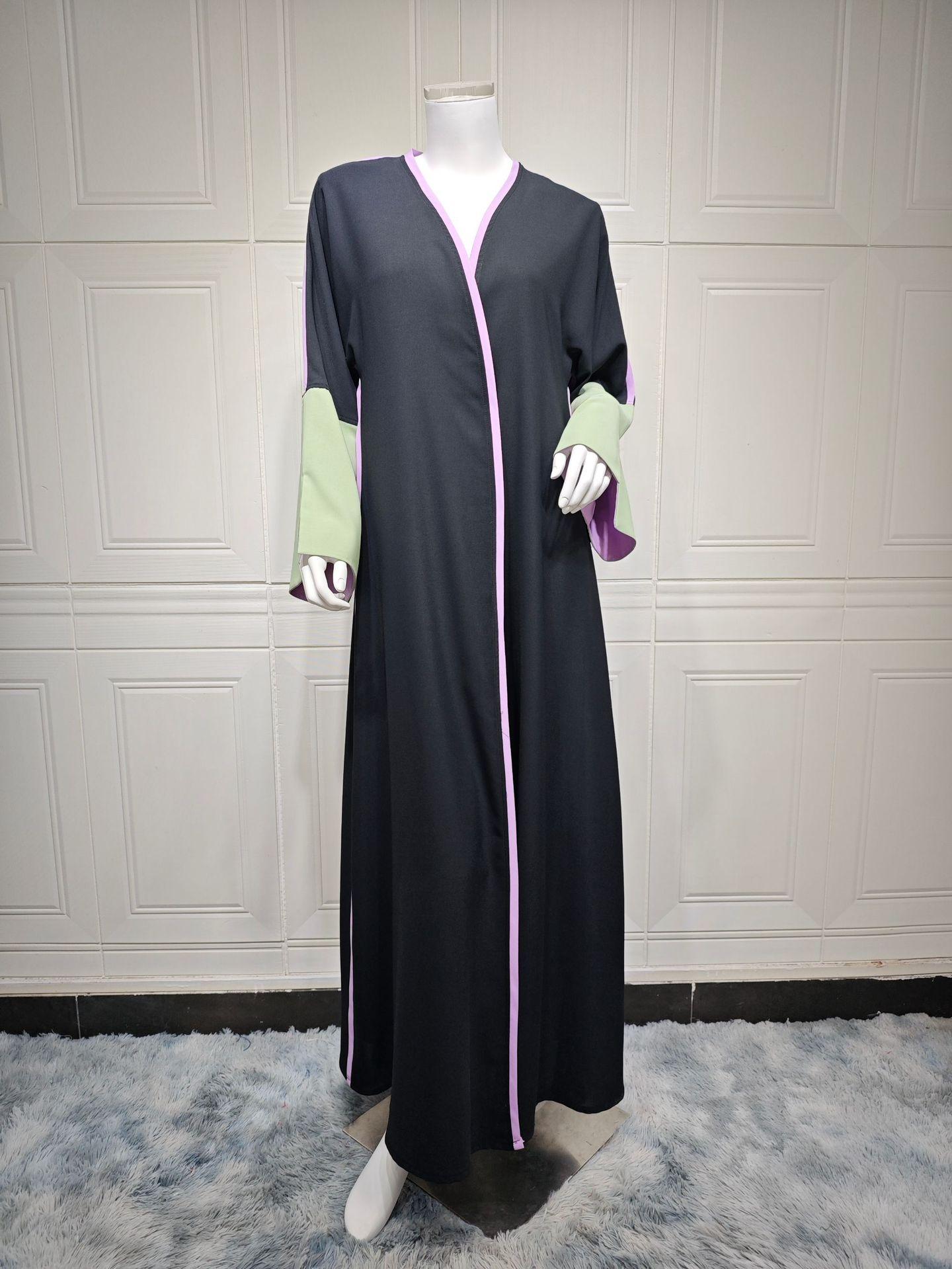 Make a bold statement with the Contrast Sleeve Abaya, a modern take on traditional elegance. Designed with a flowing black silhouette, this abaya features striking contrast panel sleeves in earthy tones, adding a unique and sophisticated touch. The lightweight fabric drapes beautifully, making it perfect for both casual and formal occasions.